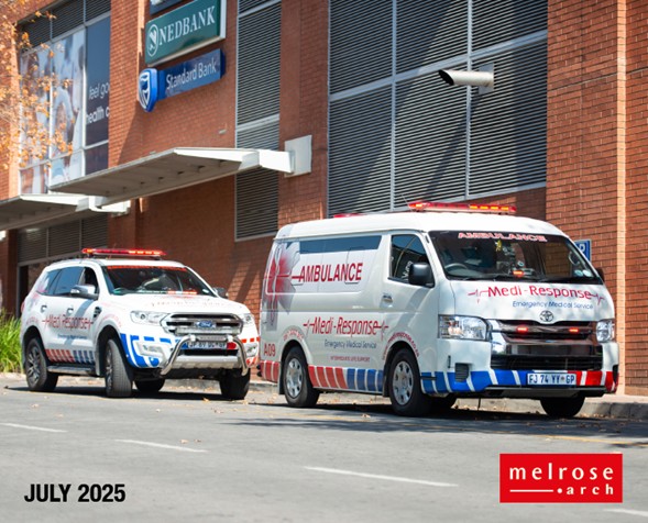From mammograms to medical emergencies, when response time is critical; as an Internationally reputable and trusted provider, Medi Response specialises in delivering quality emergency medical services tailored to clients’ needs. With a dedicated ambulance permanently on-site in the precinct, when your life depends on it, Medi Response is committed to providing rapid response and the comprehensive medical coverage needed in an emergency to visitors, tenants and residents in Melrose Arch.
